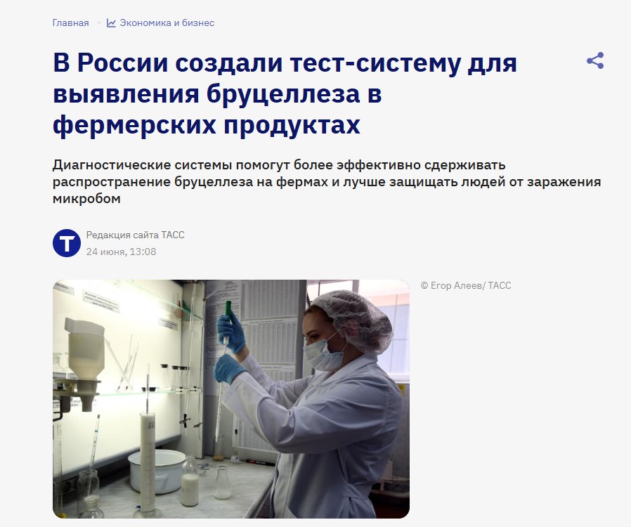 ТАСС: создана новая тест-система для выявления бруцеллеза в фермерских продуктах