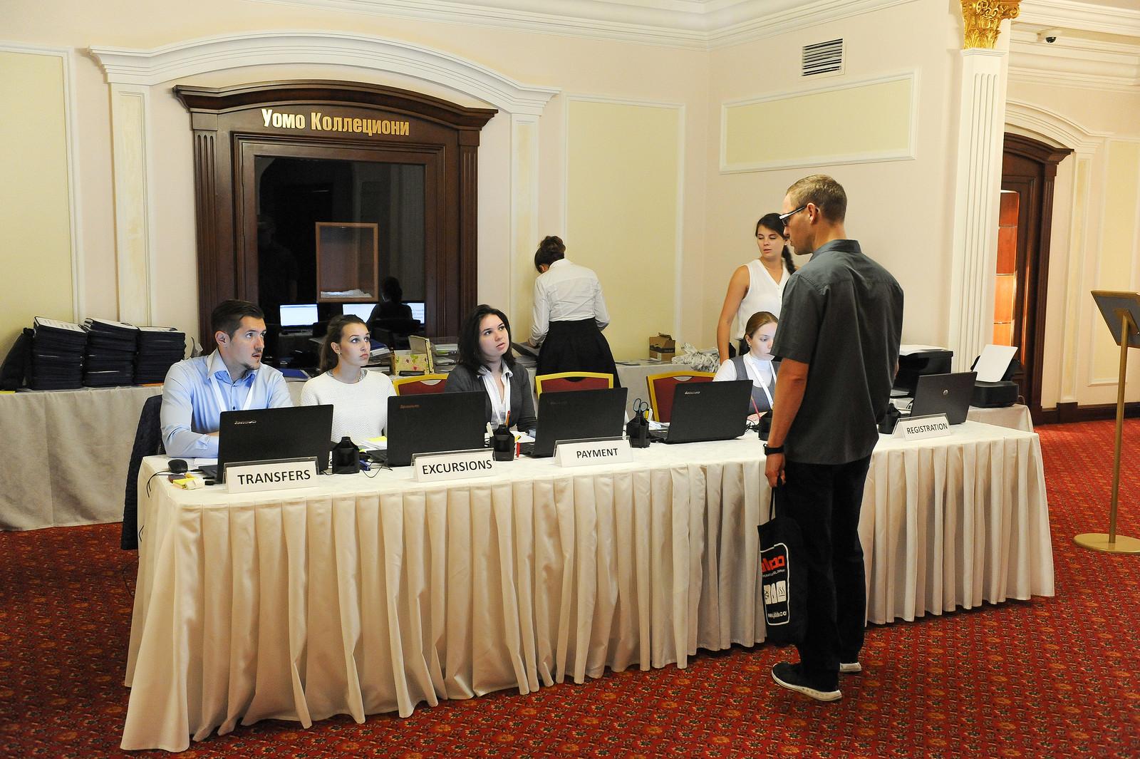 Стойка регистрации, развернутая оператором Симпозиума компанией МАКО