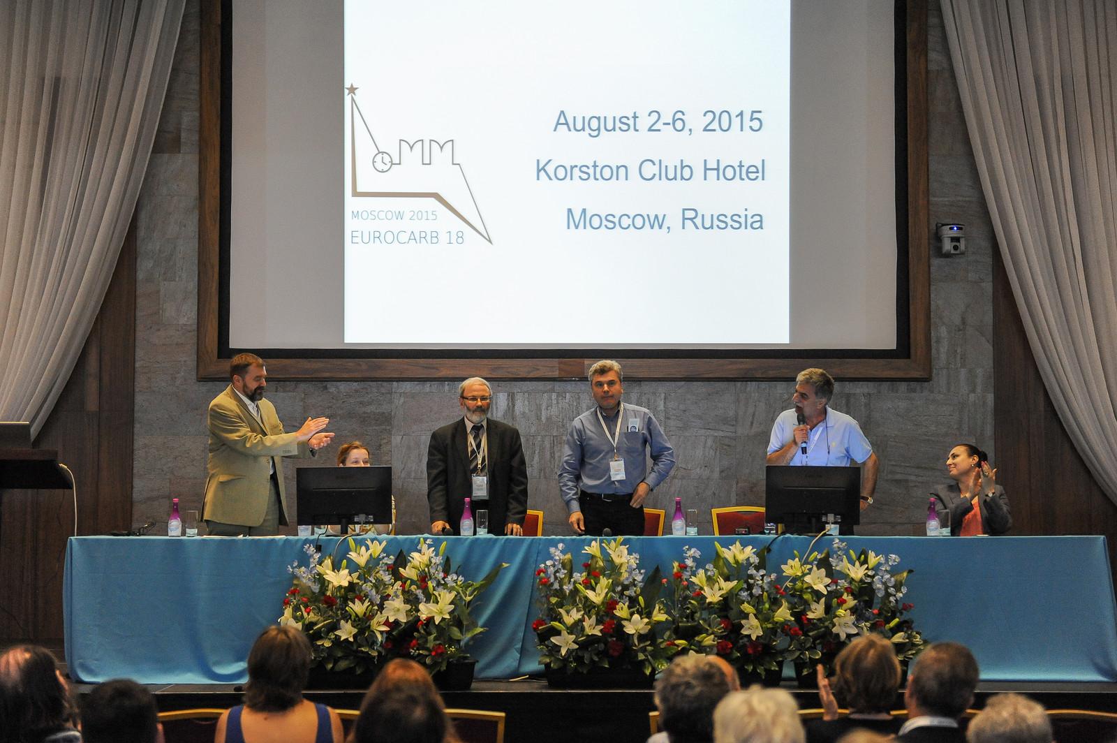По традиции на церемонии закрытия председателю оргкомитета Симпозиума профессору Ю.А. Книрелю были переданы полномочия Президента Европейского комитета по углеводам.