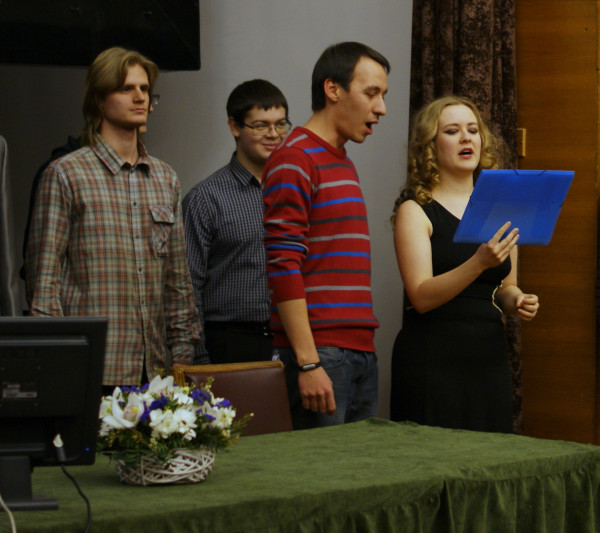 Вечер завершился поздравлением от молодежи. Студенты и выпускники ВХК РАН подготовили для гостей мероприятия праздничный концерт и выступили с музыкальными номерами, посвященными празднику.