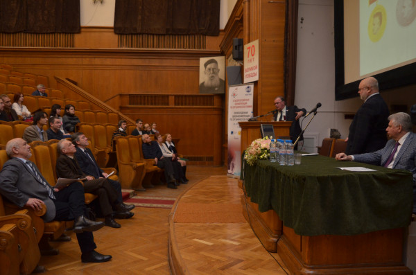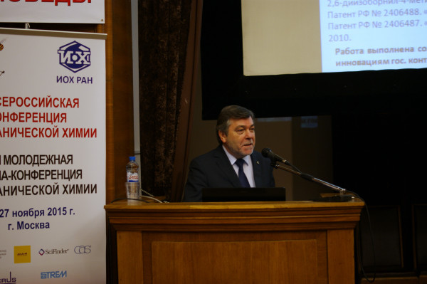 27 ноября, в пятницу, заключительный день конференции открыл член-корр. РАН C.П. Громов, который сделал доклад о фотоактивных супрамолекулярных системах на основе непредельных и макроциклических соединений. Предложен новый уникальный класс полифункциональных фотоактивных краунсодержащих непредельных красителей – фотохромов, флуорофоров и ионофоров.