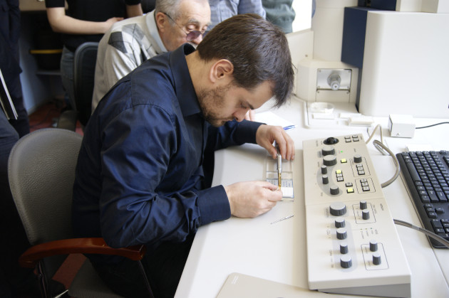 Ye. V. Kremer opened the workshop with the presentation on high resolution transmission electron microscopy provided by Hitachi HT7700 and novel features of the instrument. The HT7700 with Dual-Mode objective lens features superior high-contrast and high-resolution image quality together with analytical capabilities for biomedical and materials science. Digital design and sophisticated automation increase throughput for both novice and advanced users.