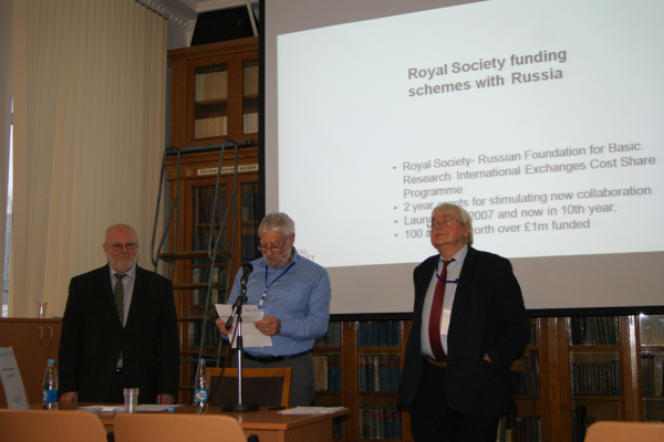 Представитель Королевского научного общества Великобритании (Royal Society), профессор Ричард Кэтлоу (Richard Catlow, University College London and Cardiff University) рассказал о методах нейтронного рассеивания и синхротронного излучения для исследования и моделирования динамики структуры гетерогенных каталитических систем и механизмов протекающих процессов на поверхности катализатора.
