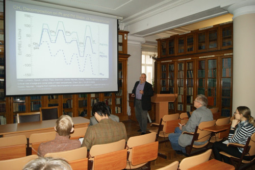 В четверг, 26 октября, в библиотеке Института органической химии им. Н. Д. Зелинского состоялась лекция профессора отделения материаловедения и химии Университета Барселоны Константина Неймана. В своем выступлении докладчик ознакомил сотрудников института и гостей с новым способом определения химического порядка в биметаллических наночастицах на основе расчётов методом функционала плотности.