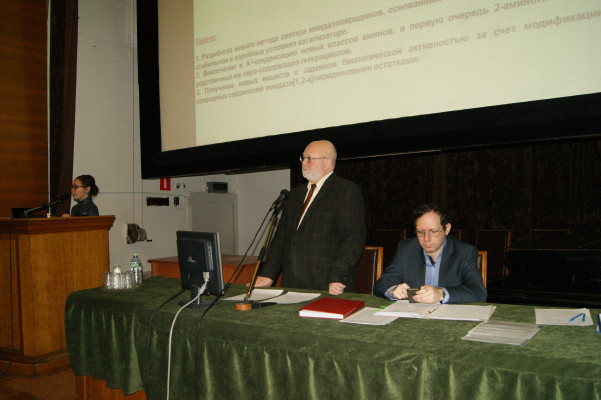 В минувшую среду, 20 декабря, в Институте органической химии им. Н. Д. Зелинского РАН состоялась защита диссертационной работы Ирины Владимировны Рассохиной «Трёхкомпонентная конденсация ацетиленов с альдегидами и гетероциклическими аминами в синтезе аннелированных производных имидазола», подготовленной под руководством заведующего Лабораторией химии стероидных соединений Института органической химии им. Н. Д. Зелинского РАН, доктора химических наук Игоря Викторовича Заварзина.