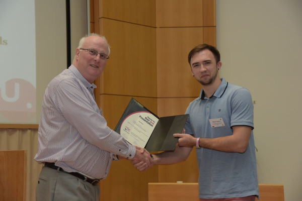 На снимках представлены церемония награждения Жаркова М.Н. за лучший устный доклад и коллективное фото лауреатов конкурса NTREM-2018.