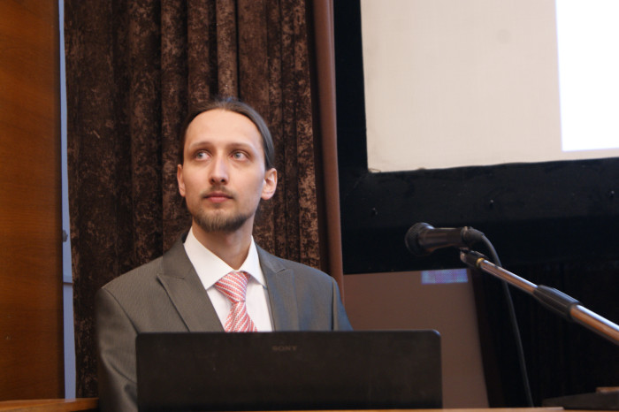 В своем выступлении соискатель отметил, что основным направлением его диссертации является развитие новых подходов синтеза иммобилизованных регенерируемых органокатализаторов и применение полученных бифункциональный катализаторов в асимметрических реакциях. При подготовке диссертации был разработан универсальный способ регенерации иммобилизованного катализатора, синтезированы хиральные γ-нитрокарбонильные соединения различных типов, в том числе энантиомерно обогащенные предшественники лекарственных препаратов баклофен, прегабалин и фенибут. Кроме этого, бы разработан стереоселективный метод получения хиральных тетрагидрохинолинов и гексагидро-1H-пироллохинолинов, изучено равновесие между циклической и енольной формами 2-гидроксидигидопирано[3,2-с]хроменов, а также обнаружена прямая зависимость между кислотностью енола и стабильностью циклических полукеталей. Впервые были синтезированы стабильные цикличексие полукетали, содержащие фрагмент бензофеназин-5-ол. Структура полученных соединений подтверждена данными 1Н, 13С ЯМР, рентгеноструктурного анализа и масс-спектрометрии высокого разрешения.