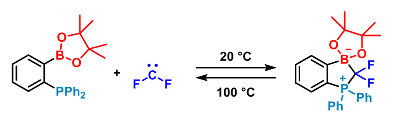 В лаборатории № 8 ИОХ РАН этот уникальный интермедиат сумели зафиксировать с помощью фосфина, модифицированного борильным фрагментом. В то время как реакция дифторкарбена с алкенами хорошо известна, фосфиноборан реагирует дифторкарбеном на порядки быстрее алкенов. При этом, взаимодействие дифторкарбена с таким фосфином имеет обратимый характер, а полученный аддукт может высвобождать дифторкарбен уже при небольшом нагревании.