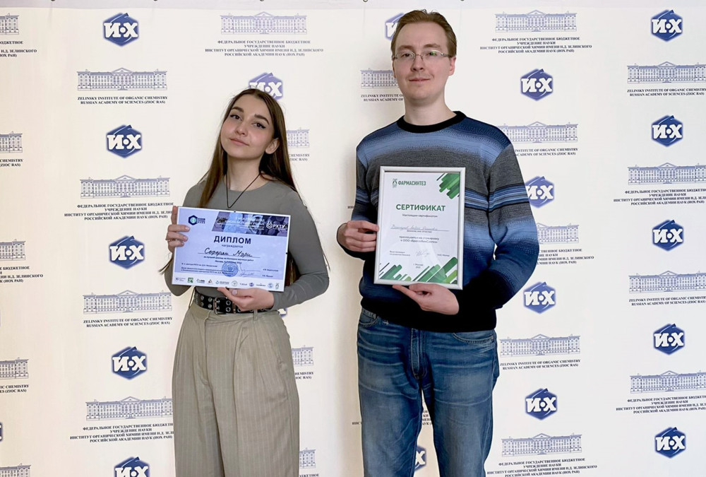 Работа аспирантки ИОХ РАН Мэри Сеферян на тему «Синтез новых антибактериальных четвертичных аммониевых соединений на основе гетероциклического линкера» была удостоена приза за лучший доклад. Студент шестого курса РХТУ им. Д.И. Менделеева Андрей Винокуров, занимающийся научной работой в ИОХ РАН, представил работу на тему «Высокодиастереоселективный мультикомпонентный синтез полизамещенных 2-гидрокси-2-трифторметилпиперидинов с четырьмя и пятью стереоцентрами» и был награжден сертификатом о приглашение на стажировку в компанию «Фармасинтез».