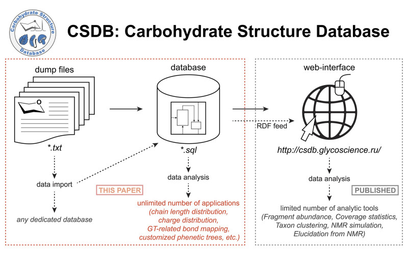 Одна из крупнейших в мире платформ гликоинформатики — Carbohydrate Structure Database (http://csdb.glycoscience.ru) — развивается на базе Лаборатории углеводов и биоцидов им. академика Н.К. Кочеткова ИОХ РАН с середины 2000-х годов. Она снабжает гликохимиков и гликобиологов опубликованной, производной, смоделированной или предсказанной информацией об углеводах природного происхождения. Хотя ее веб-интерфейс постоянно пополняется новыми функциями, не все можно сделать через Интернет, и существует доля необычных запросов, требующих прямого обращения к данным. С 2022-го года, аннотированные и курированные данные, которыми заполнена база, бесплатно доступны ученым в виде, допускающем самостоятельный анализ. Примеры такого анализа, как и сами данные, теперь можно получить из статьи нового типа – data descriptor — в специальном журнале Scientific Data группы Nature.