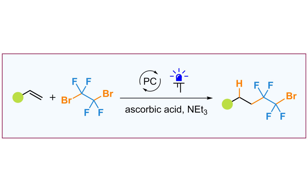 В Лаборатории функциональных органических соединений ИОХ РАН разработан метод фотокаталитического гидроперфторалкилирования алкенов. В качестве фторирующего агента использовался доступный фреон 1,2-дибромтетрафторэтан. Процесс протекает в мягких условиях при облучении синим светом в присутствии фотокатализатора, не содержащего атомов тяжелых металлов. В качестве восстановителя была использована недорогая и доступная аскорбиновая кислота. В ходе исследования было также показано, что полученные тетрафторбромиды могут быть успешно использованы для синтеза широкого ряда фторорганических соединений путем функционализации связи углерод-бром.