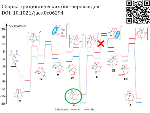 В данной работе расчётными методами были выявлены ключевые электронные эффекты в ходе сборки молекул нового класса органических соединений – трициклических пероксидов. Показано, что ключевым эффектом является «обратный α-эффект».