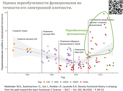 Резонансная статья, которая сперва вызвала бурные обсуждения, а впоследствии изменила подход к разработке новых функционалов DFT. В этой работе нам удалось доказать, что Миннесотские функционалы, считавшиеся на тот момент самыми точными и надежными, в действительности хорошо работают только в системах, похожих на те, которые Миннесотские функционалы используют в обучении в ущерб точности на всех остальных системах.
