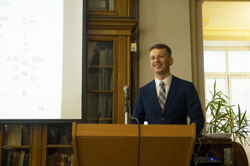 Кирилл Сергеевич Ерохин представил диссертацию на соискание ученой степени кандидата химических наук по теме «Селективный синтез серазамещенных алкенов и диенов из ацетилена с применением металлокомплексного катализа и 3D-печати» под научным руководством д.х.н., академика РАН Валентина Павловича Ананикова, заведующего Лабораторией металлокомплексных и наноразмерных катализаторов № 30.
