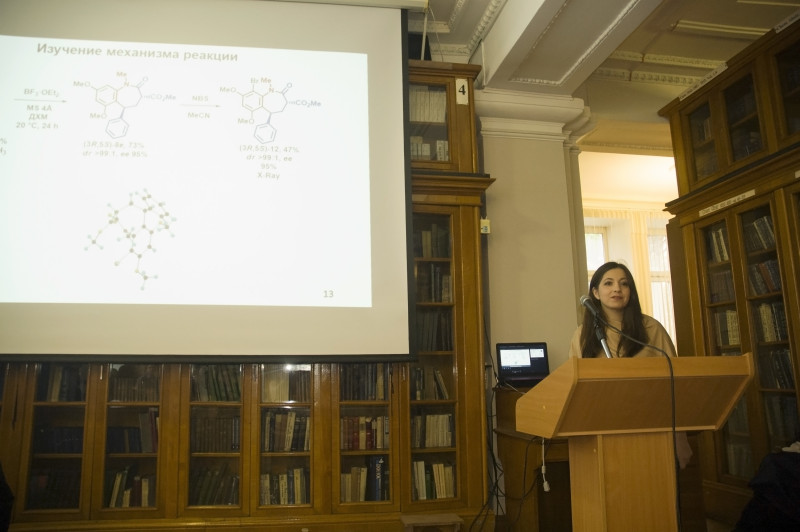 Анна Евгеньевна Вартанова представила диссертацию на соискание ученой степени кандидата химических наук по теме «Нуклеофильное раскрытие донорно-акцепторных циклопропанов (гетеро)ароматическими аминами. Подход к (гет)арен-аннелированным азепинам». Работа была выполнена под научным руководством д.х.н. Игоря Викторовича Трушкова, заведующего Лабораторией направленной функционализации органических молекулярных систем № 33.