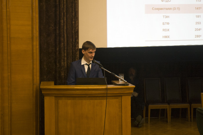 Никита Михайлович Барабошкин представил диссертацию на соискание ученой степени кандидата химических наук по теме «Теоретический дизайн в направленном синтезе энергоемких полиазотных сокристаллов». Работа была выполнена под научным руководством д.х.н. Пивиной Татьяны Степановны, ведущего научного сотрудника Лаборатории молекулярного моделирования и направленного синтеза № 44 Института органической химии им. Н. Д. Зелинского Российской академии наук.