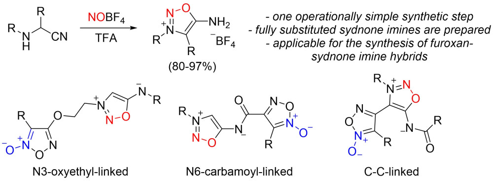 Alexander D. Shuvaev, Egor S. Zhilin, Leonid L. Fershtat NOBF4-mediated Assembly of the Sydnone Imine Scaffold in the Synthesis of Double Nitric Oxide Donors // Synthesis, 2023, accepted manuscript. DOI: 10.1055/a-2011-7264.