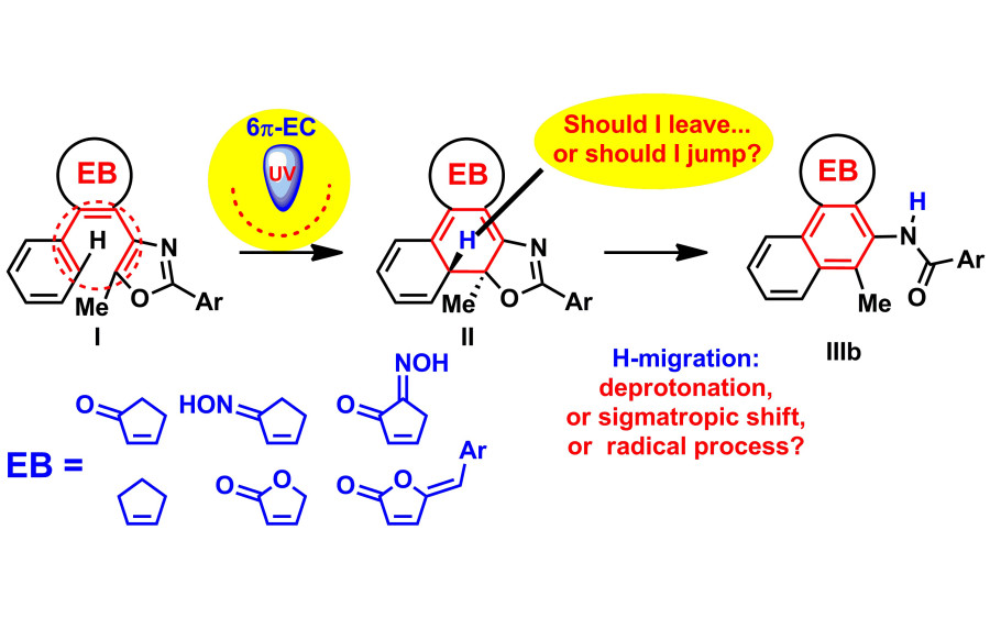 Ученые Лаборатории гетероциклических соединений ИОХ РАН на протяжении последних лет активно занимаются различными направлениями в химии диарилэтенов. В одной из своих последних работ ими была исследована скелетная фотоперегруппировка с участием УФ-индуцированной 6π-электроциклизации диарилэтенов с различными этеновыми мостиками. Было обнаружено, что среди трех возможных путей реакции после 6π-электроциклизации, таких как радикальное отщепление, сигматропный сдвиг или депротонирование, именно последний вариант является преобладающим. Введение электроотрицательного заместителя в «этеновый мостик» диарилэтенов и/или использование третичных аминов в качестве акцепторов протона благоприятствует процессу депротонирования. Экспериментальные результаты хорошо согласуются с теоретическими расчетами по методу теории функционала плотности.