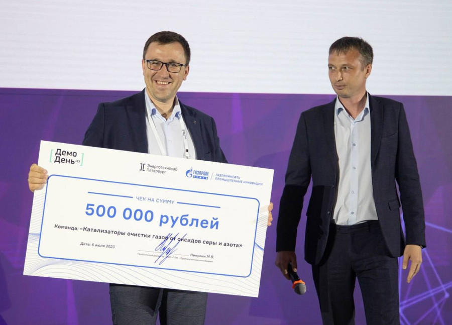 Специальный приз в размере 500 000 рублей от «Газпромнефть – Промышленные инновации» получил коллектив, предлагающий решение для каталитической очистки отходящих газов ТЭЦ от кислых компонентов. Руководитель проекта – заведующий Лабораторией экологических исследований и разработок ИОХ РАН к.т.н. Павел Викторович Соколовский.