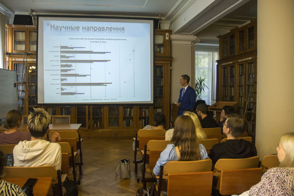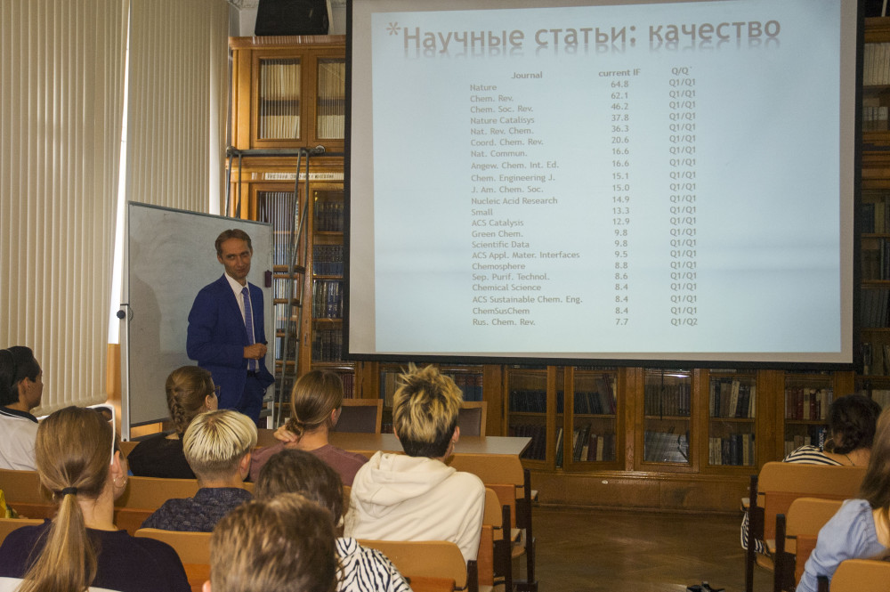 Академик В.П. Анаников в рамках своей лекции «Траектория развития студента в научно-образовательных проектах» рассказал о возможностях и перспективах. Научные презентации о современных химических исследованиях рассказали присутствующим о лучших местах для научной работы студентов.