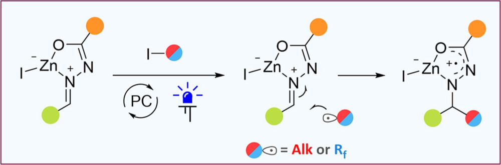 Учеными Лаборатории функциональных органических соединений ИОХ РАН впервые получены цинковые производные N-ацилгидразонов, которые показали себя универсальными акцепторами радикалов. В целом, гидразоны легко доступны и гидролитически стабильны, что делает их удобной платформой для получения самых разнообразных азот-содержащих соединений. Однако наличие сразу двух атомов азота уменьшает электрофильный характер их C=N связи, что приводит к снижению эффективности радикального присоединения. Активация гидразонов путем их комплексообразования с цинком привела к значительному росту их реакционной способности в процессах с участием свободных радикалов. Исследователям ИОХ РАН удалось успешно присоединить к гидразонам алкильные и фторированые радикалы в условиях фоторедокс катализа. В зависимости от природы радикала и условий реакция может протекать по восстановительному или нейтральному режиму с образованием замещенных гидразинов или гидразонов соответственно.