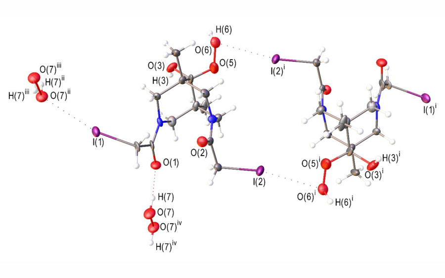 Учеными из лаборатории супрамолекулярной химии ИОХ РАН, лаборатории пероксидных соединений и материалов на их основе и лаборатории кристаллохимии и рентгеноструктурного анализа ИОНХ РАН впервые получена серия соединений с галогенными связями Hal…O-O между атомами иода и брома галогенсодержащих биспидинов и атомов кислорода молекулы пероксида водорода и гидропероксогруппы производных биспидина в соответствующих кристаллических структурах.