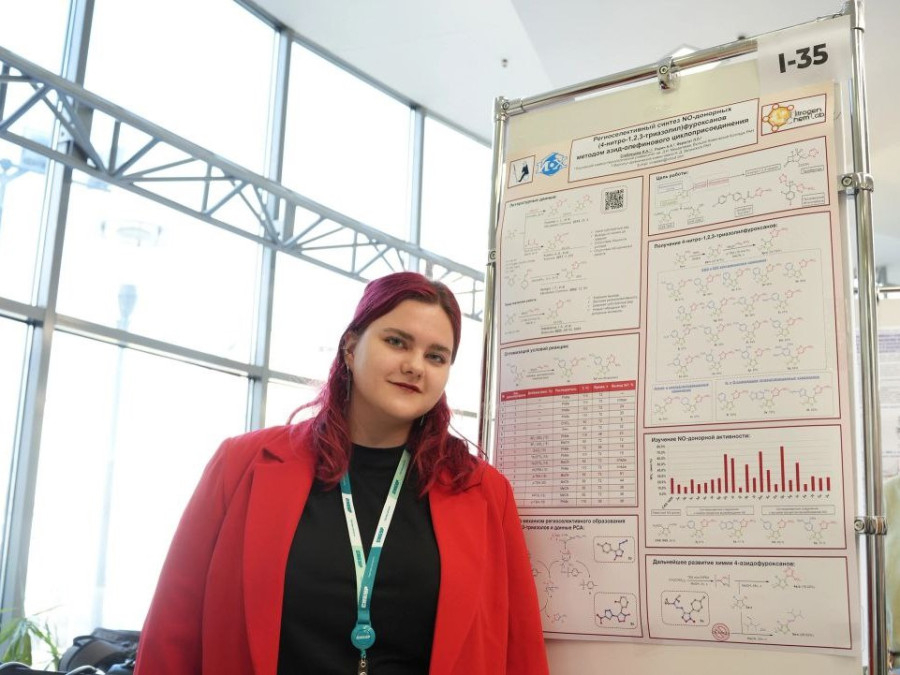 «В представленной на конкурсе работе был предложен простой и эффективный метод региоселективного получения (4-нитро-1,2,3-триазолил)фуроксанов на основе [3+2]-циклоприсоединения. Предложенный синтетический подход позволяет легко собрать 4-нитро-1,2,3-триазольный фрагмент на разнообразных субстратах: от алкильных до гетарильных производных. Полученные фуроксаны обладают NO-донорный способность в широком диапазоне, что открывает новые горизонты для разработки будущих лекарственных препаратов», — Ирина Стеблецова.