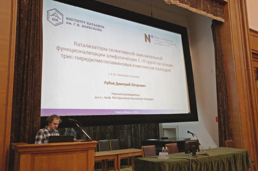 Дмитрий Петрович подробно рассказал о своем исследовании в области катализа, целью которого является разработка и исследование катализаторов для селективной оксифункционализации алифатических С-Н групп на основе аминопиридиновых комплексов палладия (II).