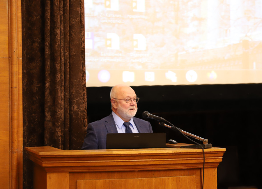 Мероприятие открыл академик РАН Михаил Петрович Егоров, научный руководитель ИОХ РАН, заведующий Лабораторией химии карбенов и нестабильных молекул. В своем выступлении он рассказал студентам о структуре Российской академии наук, на какие отделения она делится, и познакомил их с историей и деятельностью самого Института органической химии.