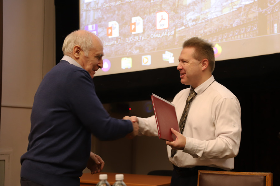 Первым делом участники Совета тепло поздравили Александра Авраамовича Грейша — доктора химических наук, ведущего научного сотрудника Лаборатории разработки и исследования полифункциональных катализаторов — с его 80-летием. Коллеги отметили не только его научные достижения и вклад в развитие химии, но и личные качества, такие как преданность делу и отзывчивость. Александр Авраамович является ярким примером того, как научная работа может сочетаться с мудростью и жизненным опытом.