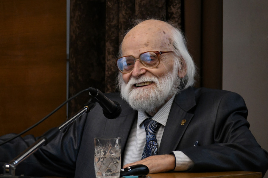 Участников заседания поздравил сын выдающегося российского и советского химика-органика Николая Дмитриевича Зелинского, имя которого сегодня носит Институт органический химии, — Андрей Николаевич Зелинский. Он сказал, что они с ИОХ почти ровесники, только Андрей Николаевич на год старше — ему 91 год. Он вспомнил, как в отцовском доме собирались многие известные химики, с которыми ему посчастливилось познакомиться лично: «Отец говорил так: „назад надо смотреть с благодарностью, вперед — с надеждой, а вверх — с верой“. И когда я смотрю назад, могу сказать, что благодарен судьбе за то, что она дала мне возможность в своей жизни встречаться с выдающимися учеными, с которыми трудился мой отец».