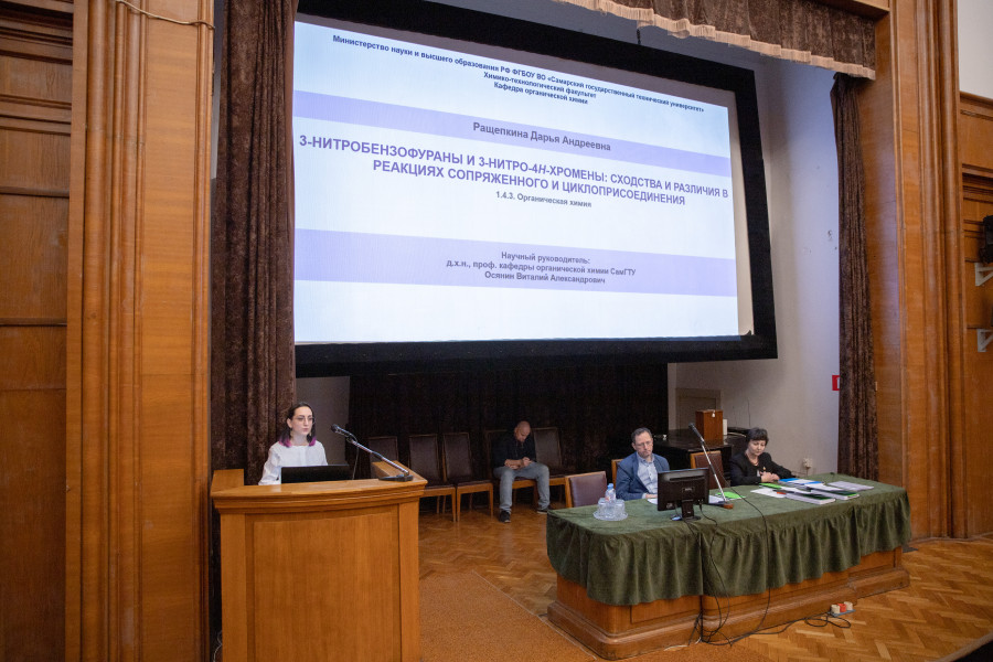 Ращепкина Дарья Андреевна представила диссертацию на соискание ученой степени кандидата химических наук «3-нитробензофураны и 3-нитро-4H-хромены: сходство и различия в реакциях сопряженного и циклоприсоединения».