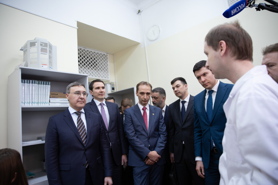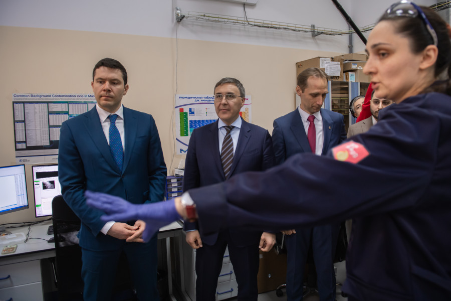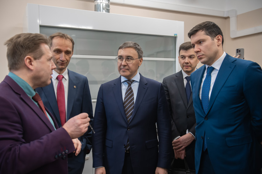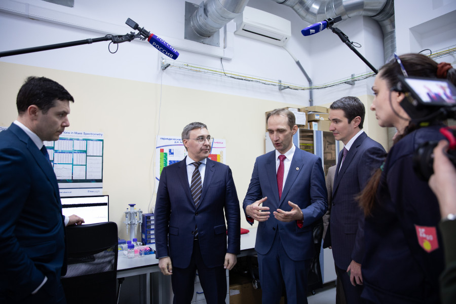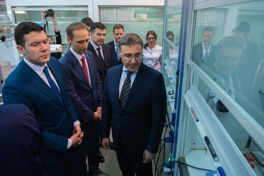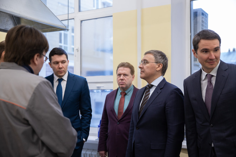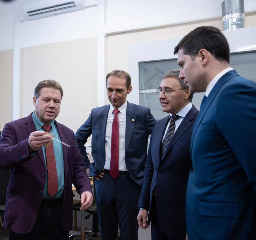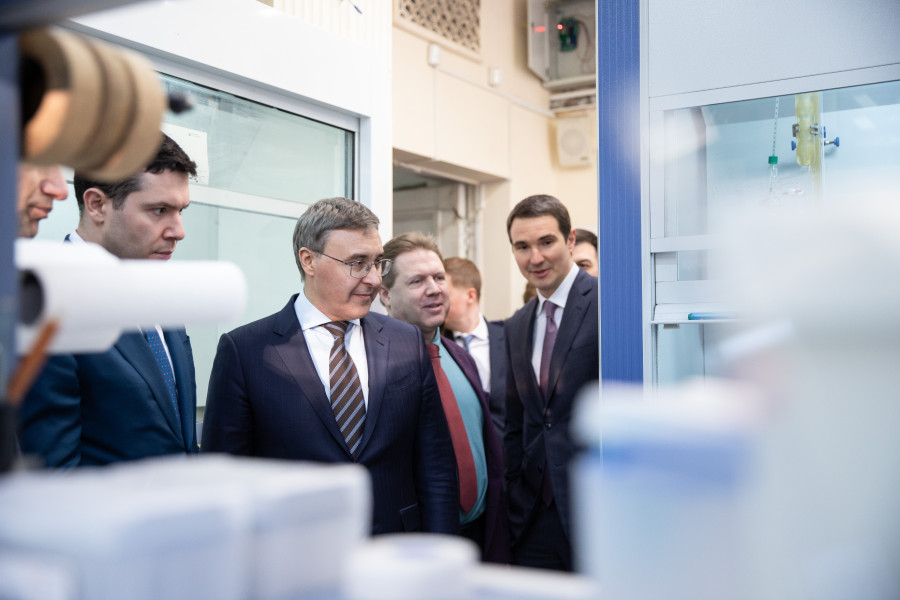 Валерий Фальков и Антон Алиханов посетили Институт органической химии им. Н. Д. Зелинского РАН