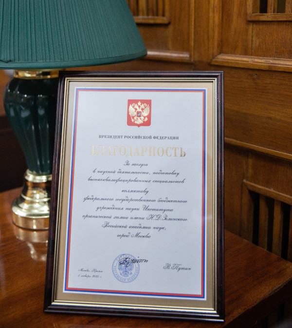 Благодарность от Президента РФ коллективу ИОХ РАН