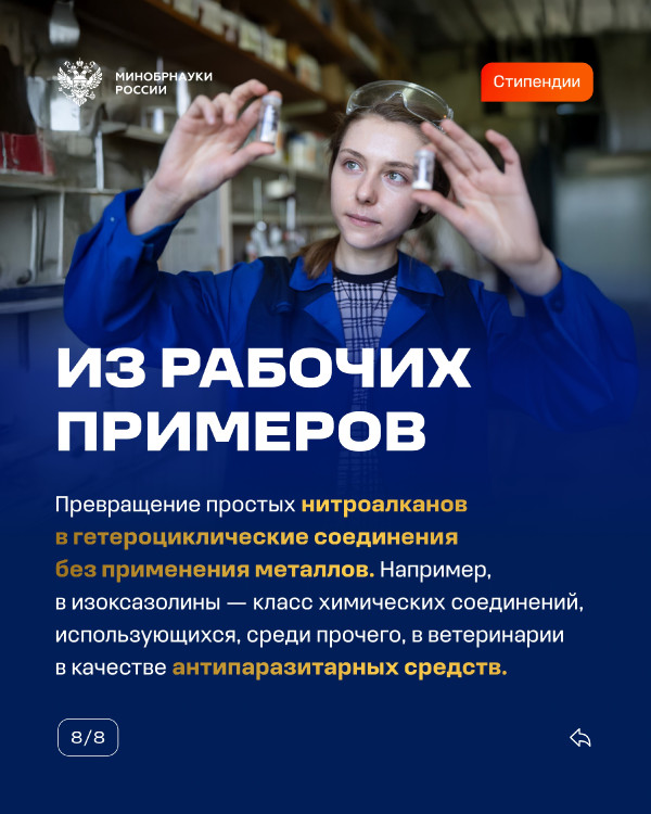 Юлия Антонова, аспирант и инженер-исследователь лаборатории органических и металл-органических азот-кислородных систем ИОХ РАН, занимается изучением нитросоединений. Ее работа — часть фундаментальной химии, в которой каждое новое вещество может изменить подход к целым технологическим направлениям.