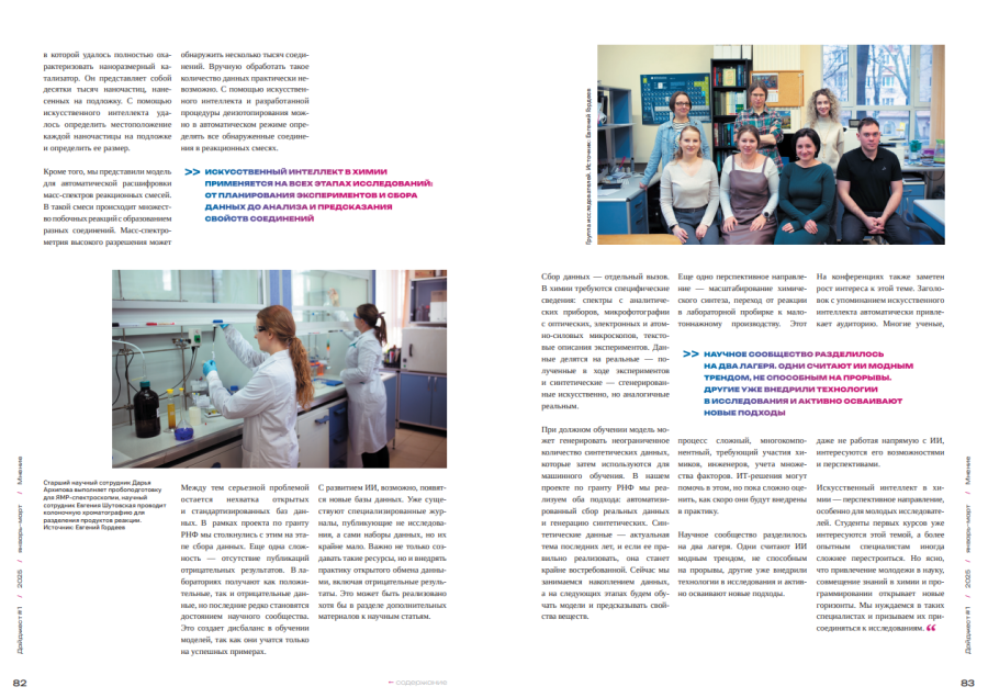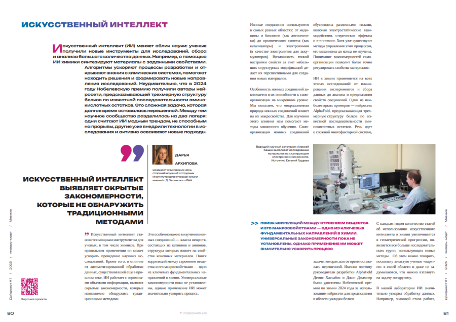 Дарья Архипова, к.х.н., с.н.с лаборатории металлокомплексных и наноразмерных катализаторов, в интервью журналу «Открывай с РНФ» поделилась мнением о месте искусственного интеллекта в химии, а также рассказала, как методы машинного обучения уже применяются в проектах лаборатории.