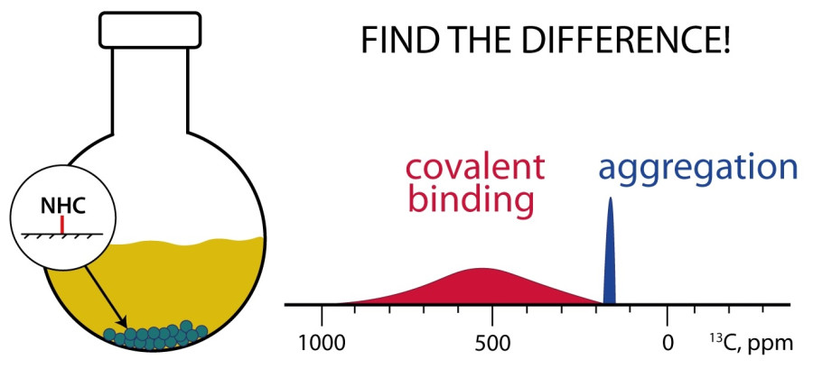 Главная сложность заключалась в том, чтобы доказать, как именно лиганды взаимодействуют с наночастицами палладия. Мы впервые применили подход Knight shift solid-state NMR (KS SS NMR), который позволяет «увидеть» связь молекул с поверхностью наночастиц. Это стало возможным благодаря характерному сдвигу сигнала 13C, который указывает на взаимодействие лигандов с электронами проводимости наночастиц палладия.