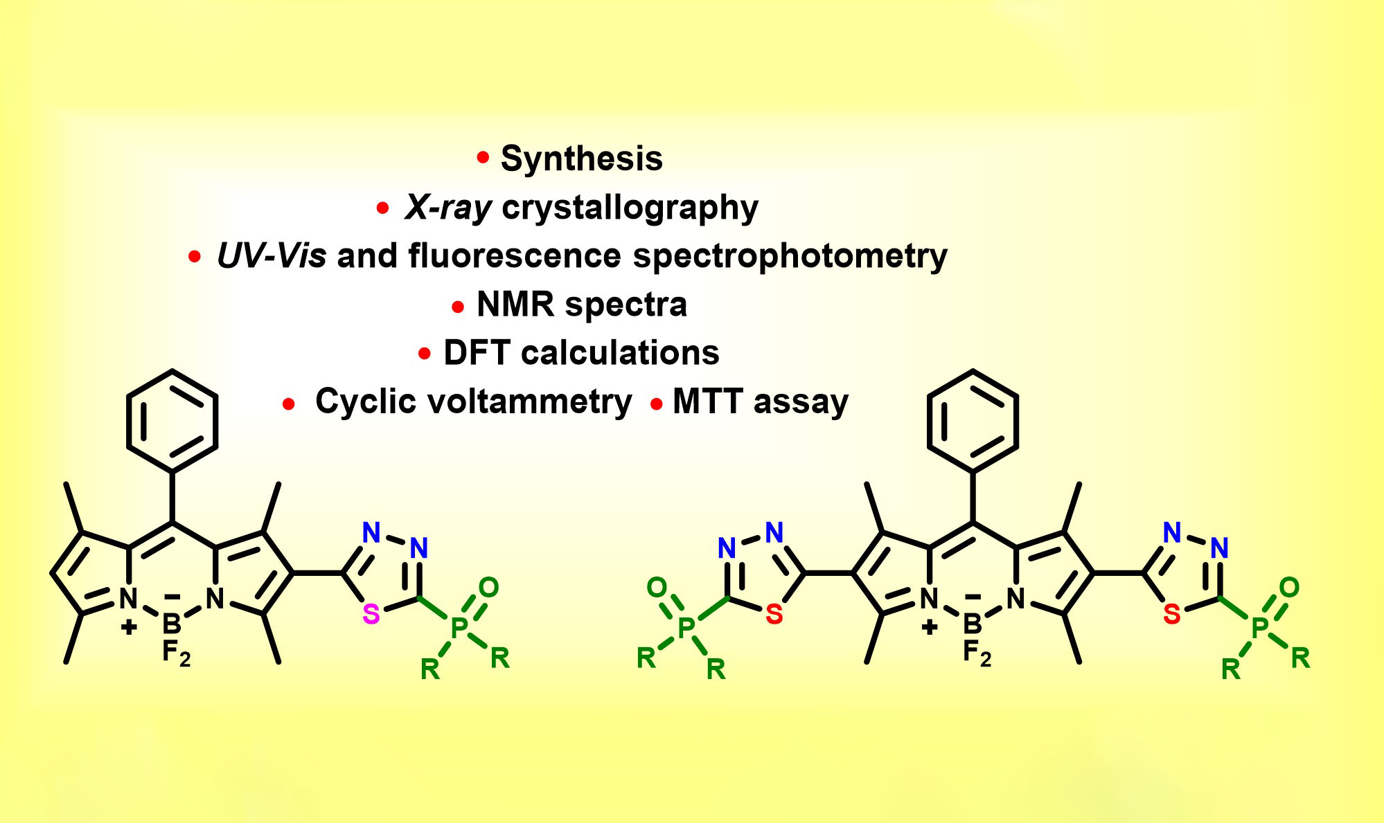Denis Y. Uvarov, Vladislav K. Lesnikov, Ivan S. Golovanov, Sergey A. Burikov, Diana I. Salnikova, Alexander M. Scherbakov, Igor V. Zavarzin, Yulia A. Volkova Effects of phosphorus(V)-substituted 1,3,4-thiadiazoles on the electronic properties of BODIPY fluorophores New J. Chem., 2025,49, 15885-15894. DOI: 10.1039/D5NJ01910A.
