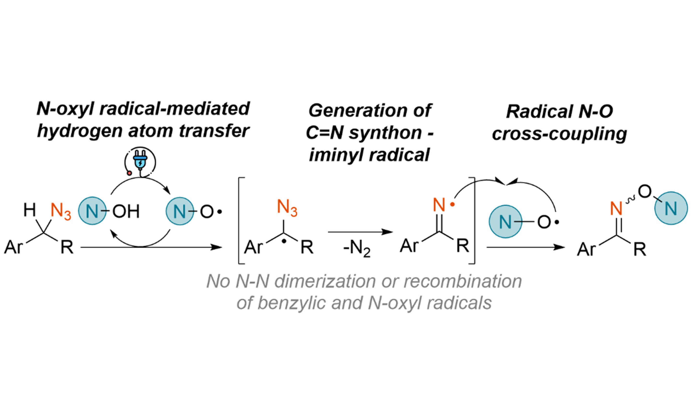 В Лаборатории исследования гомолитических реакций ИОХ РАН был обнаружен селективный процесс образования и перехвата иминильного радикала из бензилазидов под действием электрохимически сегнерированного фталимид-N-оксильного радикала (PINO), который в данном превращении выступает в качестве HAT-реагента и как O-компонент для целевого N-O сочетания. Данная работа является одним из немногих примеров генерации иминильного радикала напрямую из C(sp3)-N3 фрагмента.