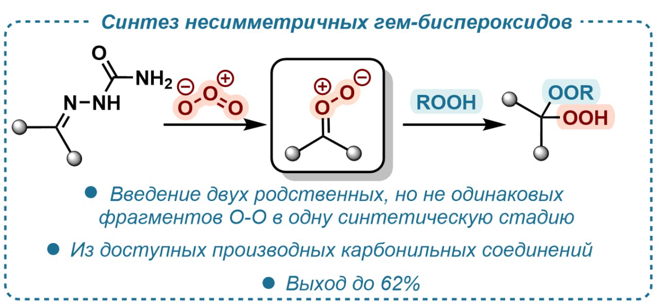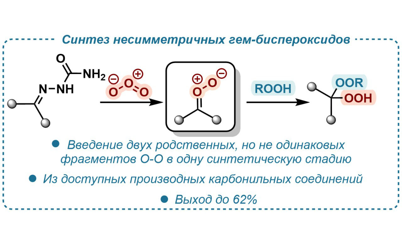 Учеными Лаборатории исследования гомолитических реакций ИОХ РАН разработан селективный метод синтеза несимметричных геминальных биспероксидов.