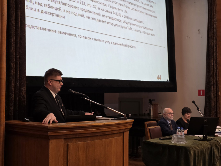 В ходе заседания диссертационного совета ИОХ РАН Алексею Федоренко и Владиславу Никольскому присудили ученую степень кандидата химических наук по специальности 1.4.3. – «органическая химия».