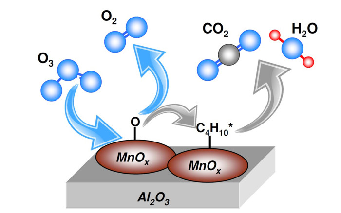 Сотрудниками Лаборатории катализа нанесенными металлами и их оксидами №35 ИОХ РАН предложен новый энергоэффективный метод удаления алканов. Суть метода заключается в проведении процесса каталитического окисления в присутствии озона. Убедительно показано, что добавление небольшого количества озона (~450 м.д.) в воздушный поток способствует резкому увеличению скорости процесса при температурах 25–350°С. Так, окисление н‑бутана на Mn‑содержащем катализаторе начинает протекать уже при 25 °С, а практически полная конверсия (80–100 %) наблюдается в интервале 70–200 °C.