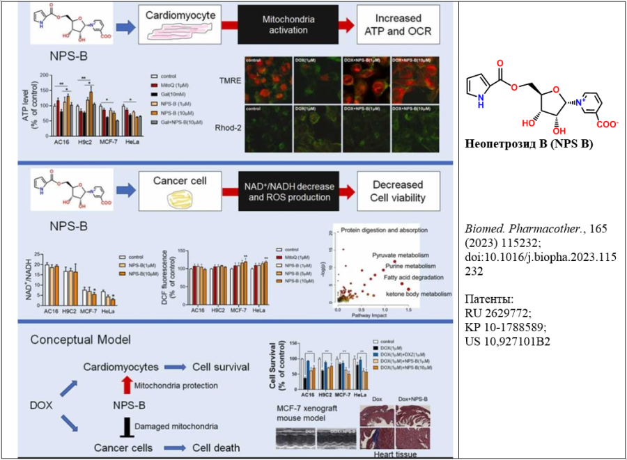 ✓ Установлен механизм действия Неопетрозида B – активного компонента для создания антиинфарктного лекарства нового типа, обладающего противораковой активностью