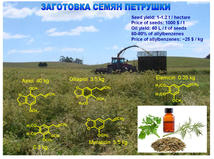 ✓ Разработана технология выделения аллилполиалкоксибензолов из семян петрушки и укропа методом экстракции жидким CO2