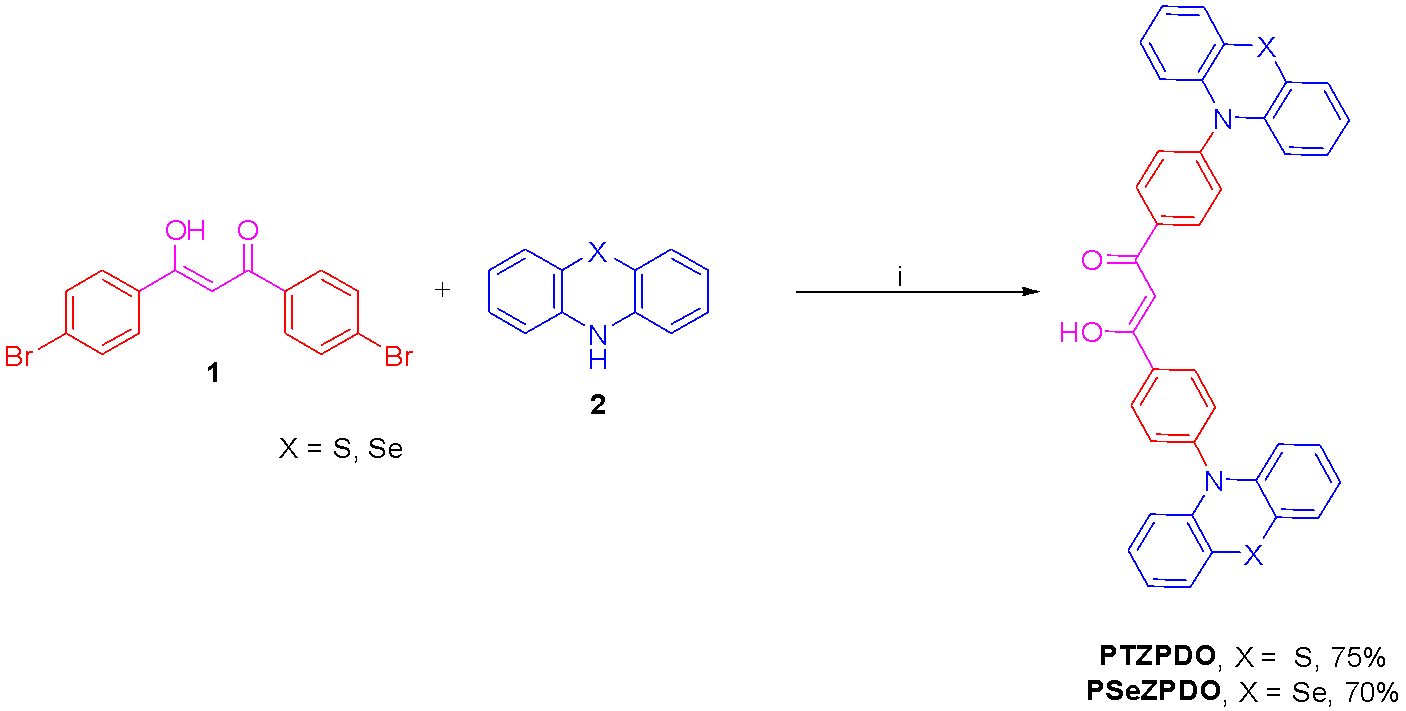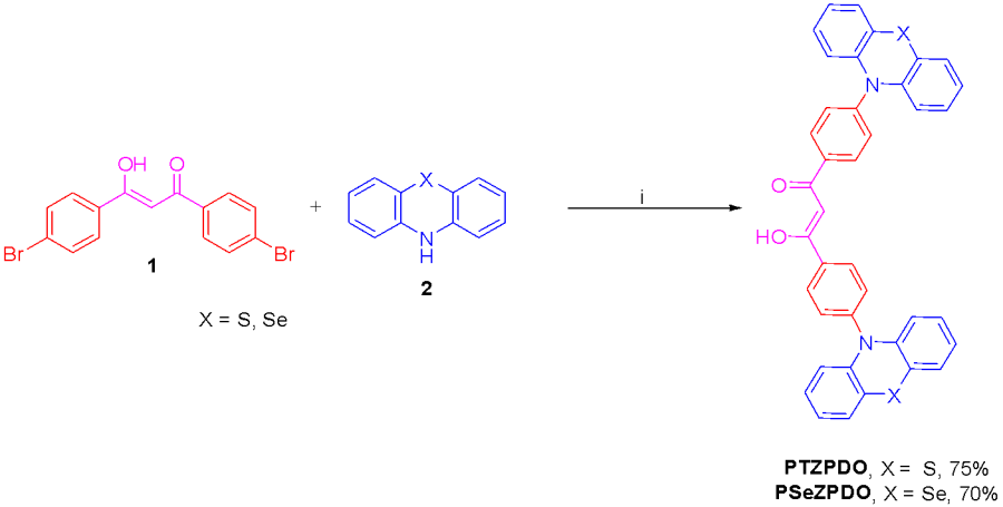 ✓ Сотрудниками ИОХ РАН было исследовано влияние тяжелых атомов (серы и селена) на фотофизические и электролюминесцентные свойства излучателей термоактивируемой замедленной флуоресценции (TADF) на основе β-дикетонов. Были синтезированы два новых красителя структуры D-π-A-π-D, содержащие донорные фрагменты фенотиазина (PTZPDO) и феноселеназина (PSeZPDO). Ab-initio квантово-химические расчеты (SA-CASSCF) показывают, что введение атомов серы и селена существенно влияет на электронную структуру и приводит к появлению различных спектров фотолюминесценции. Показано, что, хотя замещение тяжёлых атомов усиливает спин-орбитальное взаимодействие, оно также увеличивает синглет-триплетную энергетическую щель (ΔEST), снижая эффективность обратной интеркомбинационной конверсии и позволяя конкурировать между TADF и фосфоресценции триплетного состояния в плёнках, легированных PSeZPDO. Было установлено, что OLED-устройство на основе PTZPDO показало яркое излучение с максимальной яркостью 9800 кд/м², что превосходит устройство на основе PSeZPDO по эффективности излучения TADF. Эти результаты продемонстрировали высокий потенциал излучателей TADF на основе β-дикетонов с модификациями тяжёлых атомов для энергоэффективных OLED-приложений, и показали важность оптимизации молекулярной конструкции для баланса фотофизических характеристик устройства.