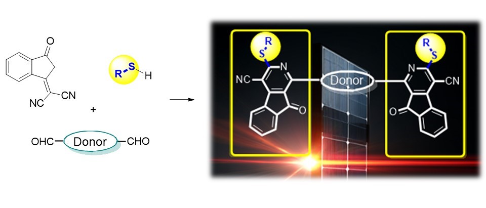 ✓ Сотрудниками ИОХ РАН разработаны мягкие условия для получения 3-тиозамещенных 9-оксо-1-гетарил-9H-индено[2,1-c]пиридин-4-карбонитрилов с количественными выходами в реакции легкодоступного 2-(3-оксо-2-арилиден-2,3-дигидро-1H-инден-1-илиден)малононитрила с S-нуклеофилами. Разработанная методика оказалась более простой и эффективной по сравнению с известными методами синтеза 3-аминозамещенных 9-оксо-1-гетарил-9H-индено[2,1-c]пиридин-4-карбонитрилов в двухстадийном подходе. Показана возможность применения синтезированных тиозамещенных 2-азафлуоренонов в качестве терминальных групп в нефуллереновых акцепторах (НФА) для органических солнечных элементов. Были оценены ключевые характеристики новых НФА с функциональными концевыми группами и проведено сравнение с известными аналогами, описанными в литературе.