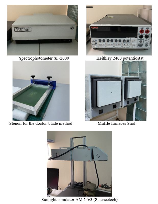 ✓ Researchers at Laboratory No. 31 of the IOC RAS, using the IOC RAS instrumentation, are constructing prototypes of dye-sensitized solar cells based on both new compounds obtained in the laboratory and commercially available dyes. To create the solar cells, the team has access to equipment including ultrasonic and UV cleaners for the working surface of electrodes, stencils for applying semiconductor layers using the doctor-blade method, programmable muffle furnaces, a vacuum system for injecting electrolyte into the sample, and other necessary equipment. The resulting devices are tested using a state-of-the-art photovoltaic efficiency meter from Sciencetech (Canada) with a certified AM 1.5G radiation source with a luminous flux of 100 mW cm-2 and a Keithley 2400 potentiostat.