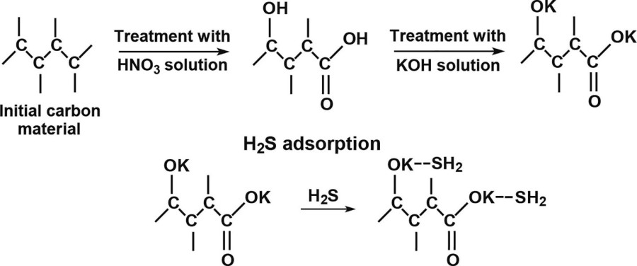 ✓ Разработан способ синтеза адсорбентов на основе багассы сахарного тростника, который включает в себя карбонизацию с последующей кислотно-щелочной обработкой. Установлено, что полученный адсорбент обладает высокой адсорбционной активностью по отношению к H2S, растворенному в воде. В ходе работы также разработан хроматографический метод экспресс-оценки поглотительной способности адсорбента по отношению к кислым газам, растворенным в воде.